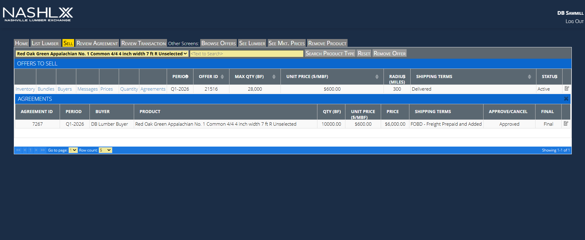 NASHLX is an electronic trading platform that facilitates spot and forward transactions between producers and buyers of hardwood lumber. Through NASHLX, both producers and buyers win.